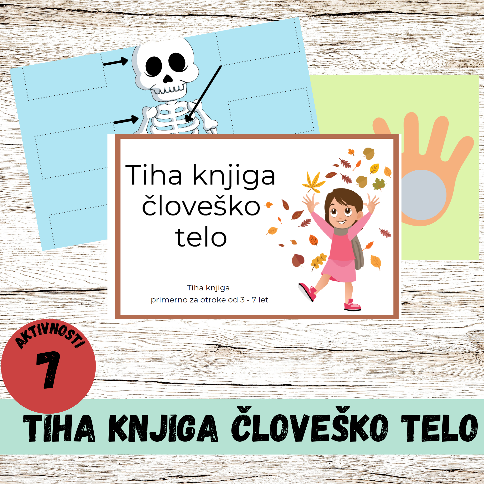Interaktivna in poučna tiha knjiga človeško telo, ki jo enostavno natisnete in izdelate doma! Namenjena je otrokom od 3 do 7 let, ter spodbuja učenje skozi igro, tipanje, razvrščanje in praktično raziskovanje.